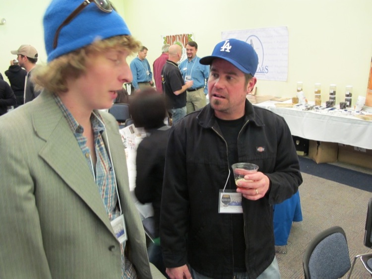 Chad Yakobsen of Crooked Stave and Dana Johnson drinking together. Chad was the next presenter and gave a ton of information about Brettanomyces Yeast...not on how to use it but on what it's all about and common misconceptions about it. Chad, who originally studied wine, put together an entire thesis study on Brettanomyces during his graduate stay at Heriot-Watt University and the International Centre for Brewing and Distilling in Edinburgh, Scotland. I have never used Brett in my beer so much of what Chad talked about went over my head, but in general he looked at a number of different strains and compared what they did during fermentation in different conditions. Some of his research can be found on his website The Brettanomyces Project and it looks like the basic conclusion is that each strain produces drastically different results. He talked to us about his preferences, what he chooses to look for in his Brett beers, and what kind of conditions can make that happen. At Crooked Stave if Chad is able to keep his beers under the conditions he requires and desires I would say we can look forward to some really fantastic beers soon. Crooked Stave, based in Ft. Collins, is not opened quite yet but should be sometime this year.