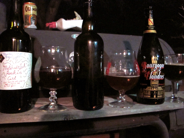 We took the Methuselah Rookie Card home, stuck it in the fridge and once cooled we cracked open the bottle along with a few other treats. Grant popped open one of his aged beers that was very similar to other Flanders style beers I've had. We also opened up a Timmerman's Bourgogne Des Flandres so that we had three fairly tart beers. The Timmerman's was the sweetest with clear cherry notes, Grant's was in the middle and perhaps the earthiest (no cherries involved) and the Phantom was definitely the most acidic of the bunch so pretty puckery. We had a great time sampling these three unique beers, none of which could really be considered a favorite.