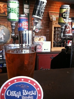 Last weekend wasn't entirely packed with beery happenings but there were a few goodies that we decided to attend individually and we thought we'd share our time.Brewer's Republic hosted an event in collaboration with Oskar Blues Brewery and Common Cause Catering on Saturday afternoon. Zach Houlahan, the regional rep for Oskar Blues, was able to bring some rare treats for a special BBQ meal. Zach brought beef fed on spent grains from the Oskar Blues farm. Front Range BBQ then smoked the beef and created brisket and ribs for the event. Common Cause Catering created a wonderful BBQ meal from the beef that included beans, potato salad, and their special BBQ sauce. Zach was also able to get his hands on a rare keg of cedar aged Dales Pale Ale for the event along with kegs of most of their other beers. The cedar aged Dales was fantastic and well worth the visit. My only critique of the event was that there wasn't too many people taking advantage of this unique dinner. More advertising may remedy this next time. We didn't even know about it that far in advance.