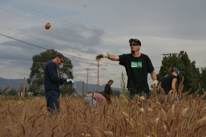 Bristol was kind enough to send along some photos. Here we see the Bristol crew picking, cutting, and roasting the pumpkins, getting them prepared for the brew. It is said that roasting the pumpkins and getting them a bit carmelized will add some carmel-pumpkin flavor to the beer. Generally the spices contribute most of the pumpkiny flavor. However, the pumpkins play a huge part in making the beer smoothe like pumpkin pie.