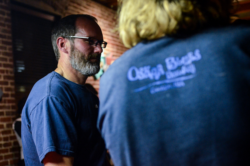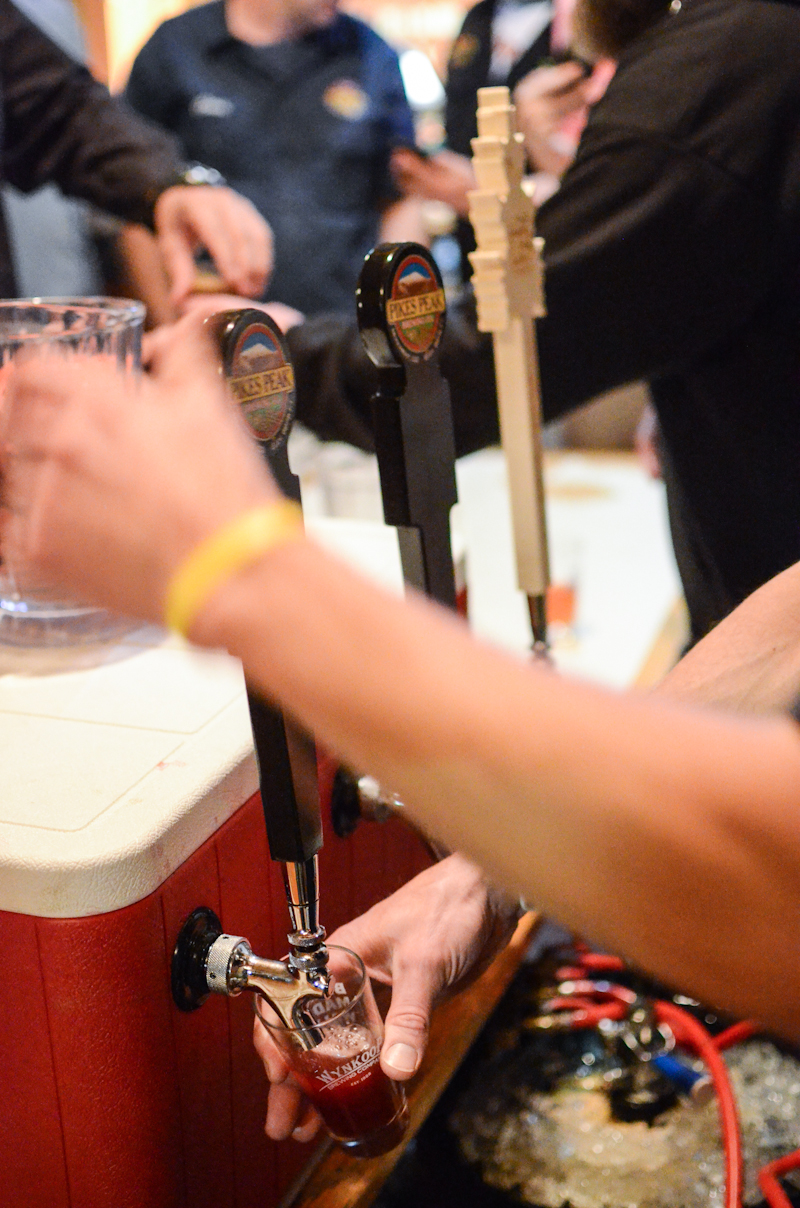 | Chris Wright of Pikes Peak and Tim Myers of Strange pouring beer during BMBW |