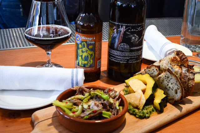 A couple special beers and a delicious tray of food at The Kitchen in Denver. We've seen the Crabtree Menage a Trois at the Meet the Brewer event here in COS. Scott also picked up a bottle of Jolly Pumpkin's de Vienta, a rare treat, a sour saison brewed with coffee and spices.