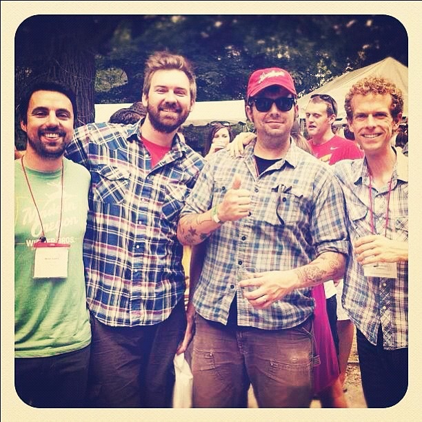 Hanging with friends at the Beer Blogger's Conference. Brady Walen of the Craft Brew Alliance, me, Michael Bussmann of New Belgium, and Win Bassett of All About Beer. |