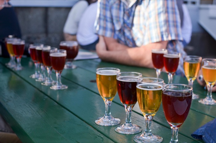| Sampling basically every single beer at Cascade Barrel House, to the chagrin of our server. |
