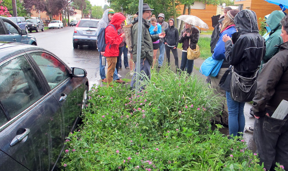 The walk was led by Glen Nagel, a professor at Portland's National College of Natural Medicine. The plants that we identified were plants in front of people's houses, we found them in vacant lots, and on sidewalks. They include: Ginkgo Biloba (right in front of Coalition too!), Rosemary, "Melissa" Mint / Lemon Balm, Clover, Wild Lettuce, English Plantain, St. John's Wort, Yarrow, Burdock, Fennel, Turkey Tail Mushroom, Parsley, Fig, and Purple Leaf Elderflower. At the end of the hike it seemed like Coalition was pretty set on the Melissa Mint and Upright was considering the Elderflower. These beers will be available during a special BMBW tapping in Portland with about ten other Oregon based breweries that have participated in this year's programming. Details to come as we firm them up a little.