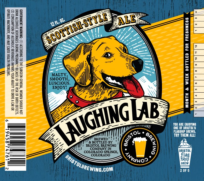 Both Laughing Lab and Ellie's label show a labrador dog facing to the right, but as we look closer, Ellie's lab looks a bit more stoic, while Bristol's Lab seems to be "laughing" and more playful thanks to Luke Flowers' unique illustration.