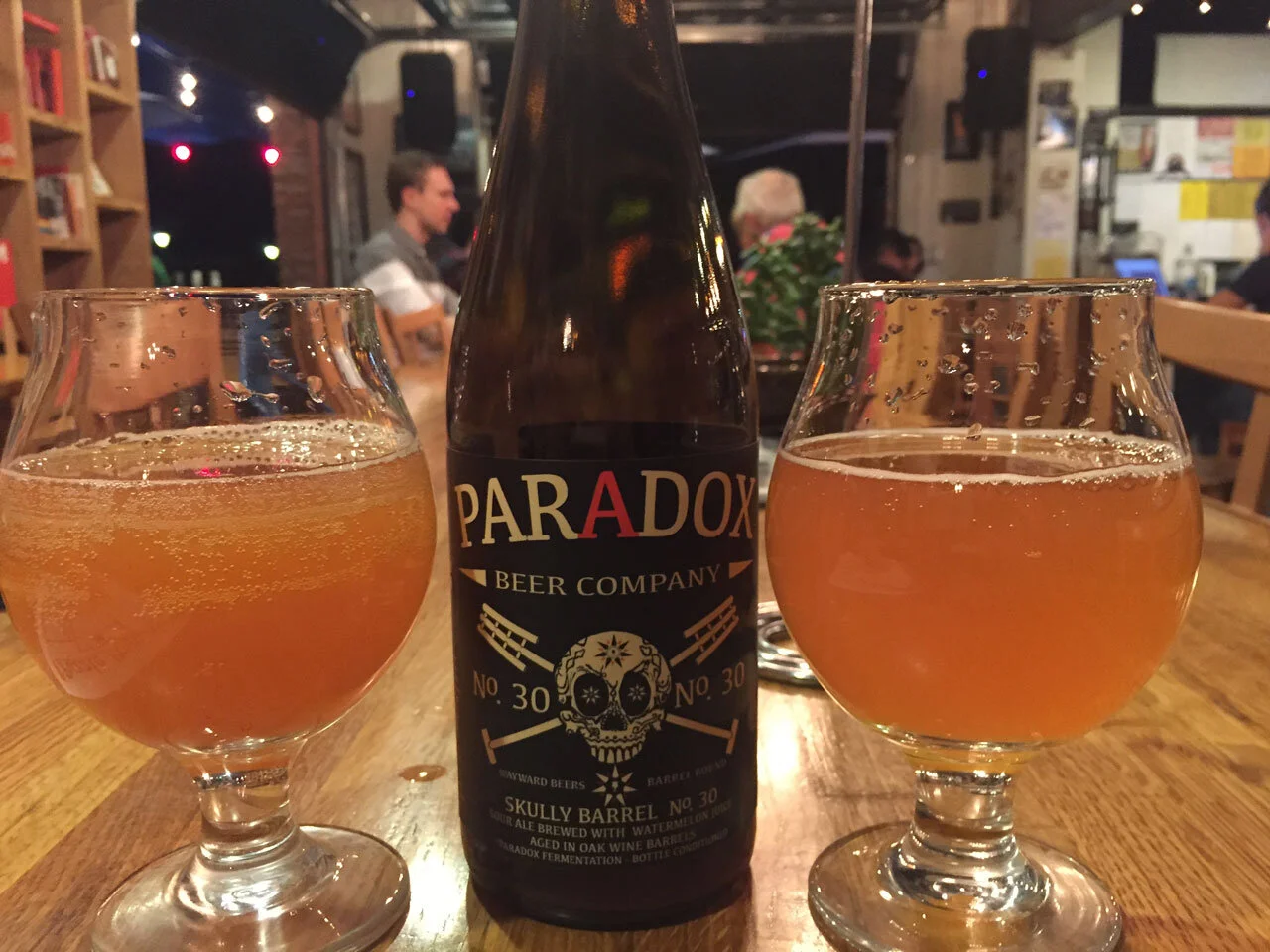 Salty Melons.When I explained this beer to my mom, she exclaimed "Yuck!"As a primarily non-beer drinker, that's sort of the response I expected out of her. Adding salt to beer, let alone sour beers, seems like a new practice yet it's actually historically inspired by gose, a style of beer dating back to 16th century Germany. Paradox Beer Company is one of many breweries who are reviving the style, continuously adding large amounts of salt to their beer and adding an extra layer of complexity that isn't there with a usual sour beer. Last year, we were initiated into the salted watermelon flavor combination with Paradox's Skully No. 15. After achieving a cult-like status among many of the sour beer loving folks, Paradox announced they would be bringing it back for the #30 release.This year's version is definitely an upgraded version of No. 15. It's nice to see them bring it back with a gusto. The color is deeper, resembling an orange-red with subtle hints of pink instead of the fruit punch style pink color we grew accustomed to last year. The flavor is better, with more watermelon juice added to this batch. Overall, this beer is just plain amazing. The only complaint I've heard from anyone has had regarded the lower carbonation, which, if you realize how much acidity and salt is in this beer, is really a non-issue. Paradox's ingenuity and varying ingredients definitely has brought them high praise from beer lovers, but Salty Melons is the beer that has put them on the map for good. It will be interesting how they approach this beer for future releases!If you see this at a local liquor store, make sure you grab one. Actually grab a case, it's that good. It definitely is Brew Love.