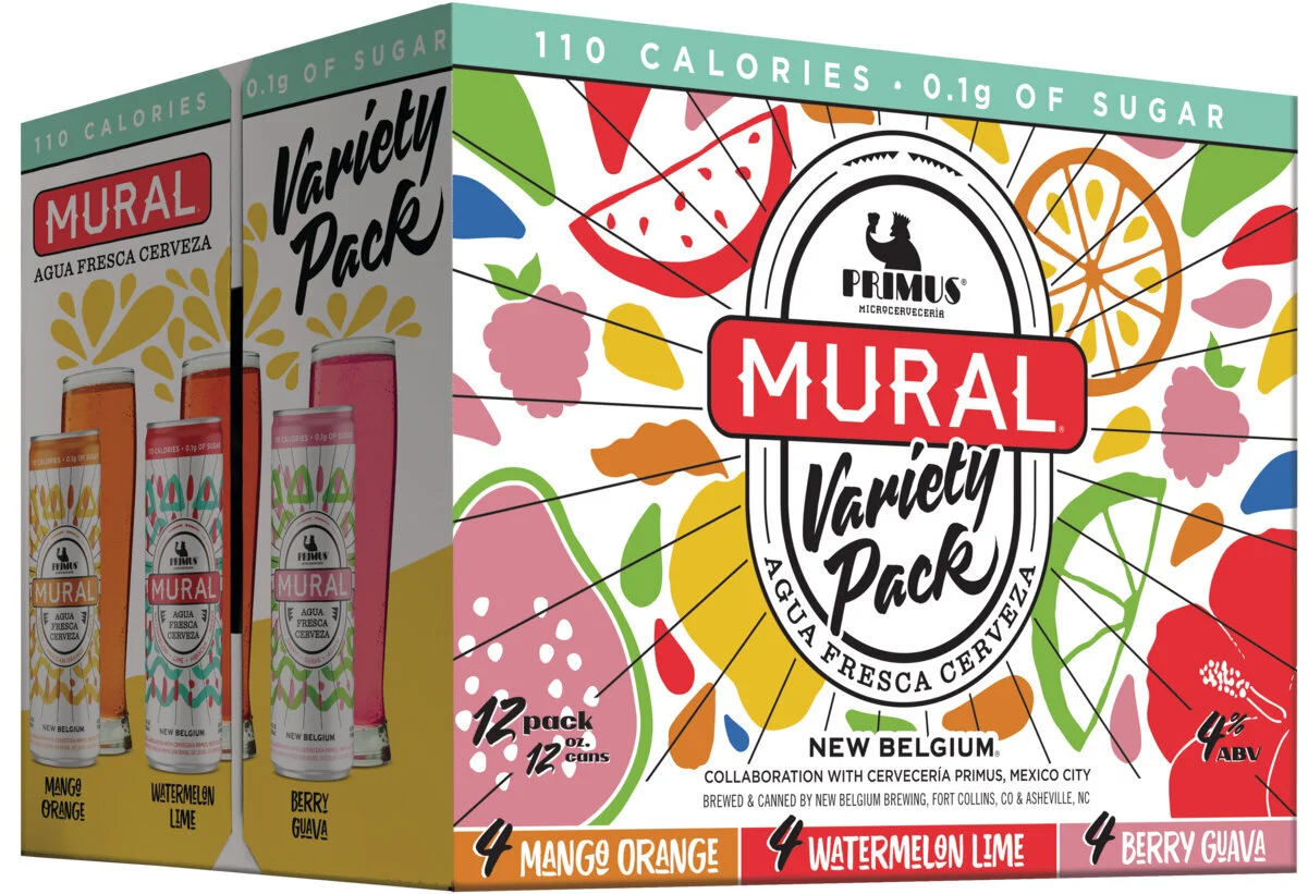 (Fort Collins, CO- March 2nd, 2020)– New Belgium Brewing announces the release of the Mural Agua Fresca Cerveza Variety Pack. In addition to the original Watermelon Lime, two new flavors will be introduced—Mango Orange and Berry Guava, stylishly packaged in slim 12 oz cans. Bright, bubbly and refreshing, the Mural Variety Pack delights with flair and flavor and is now available nationwide.